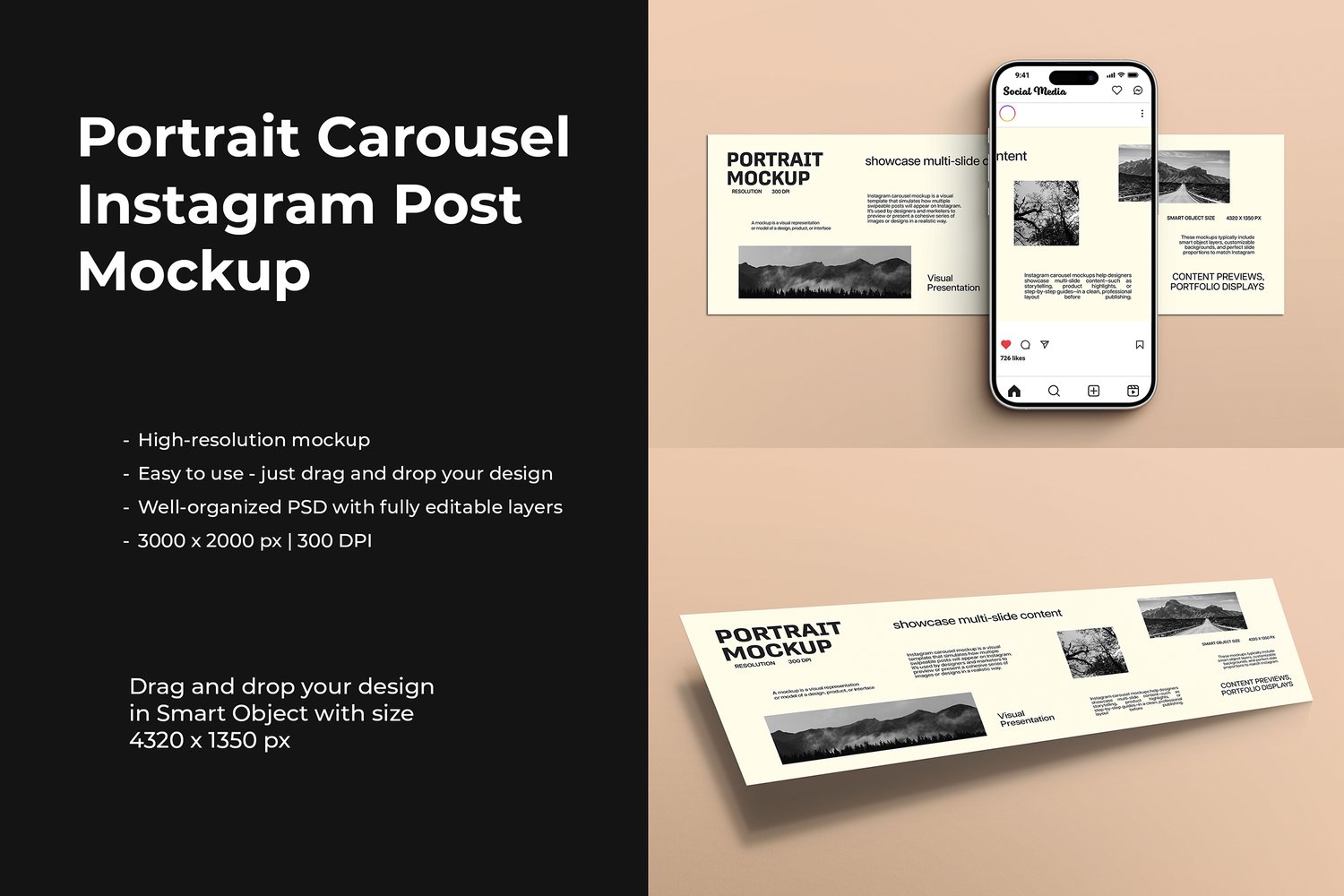 Portrait Carousel Instagram Post Mockup