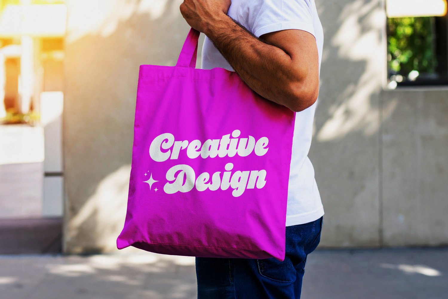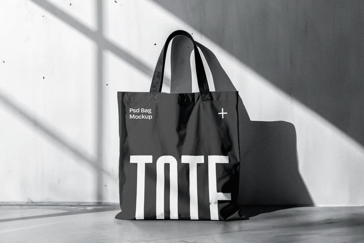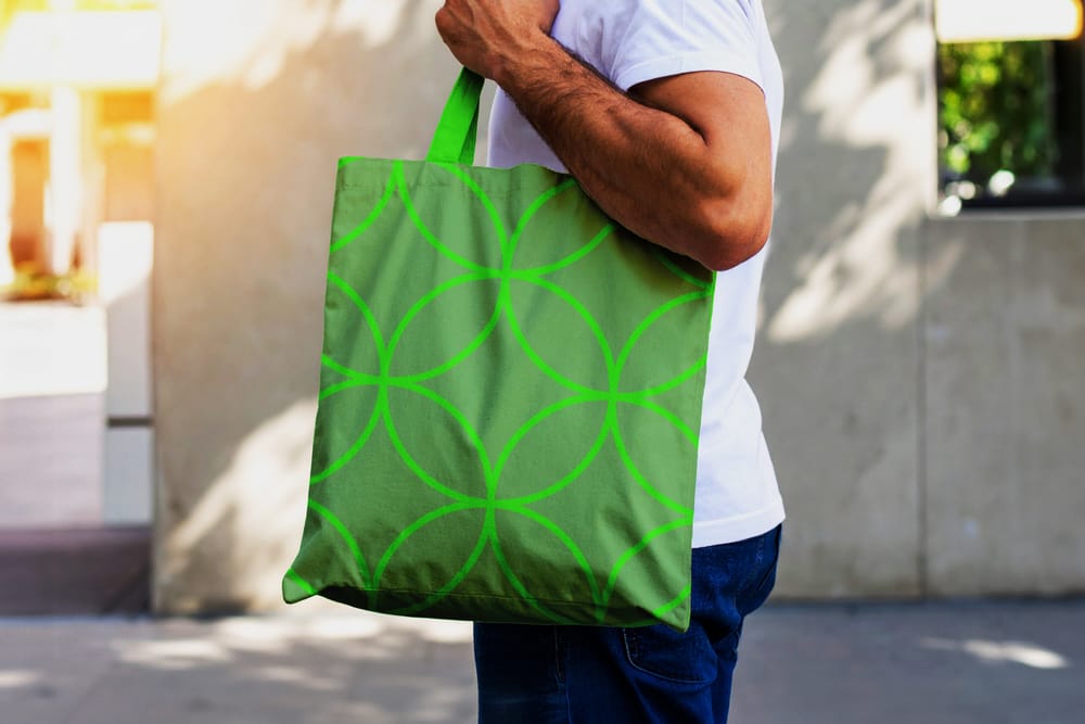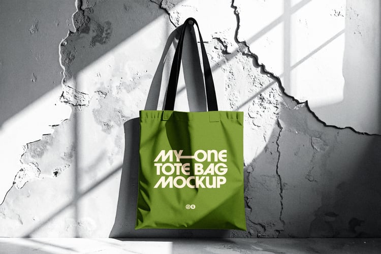 Minimalist Tote Bag Mockup Held by Man Outdoors