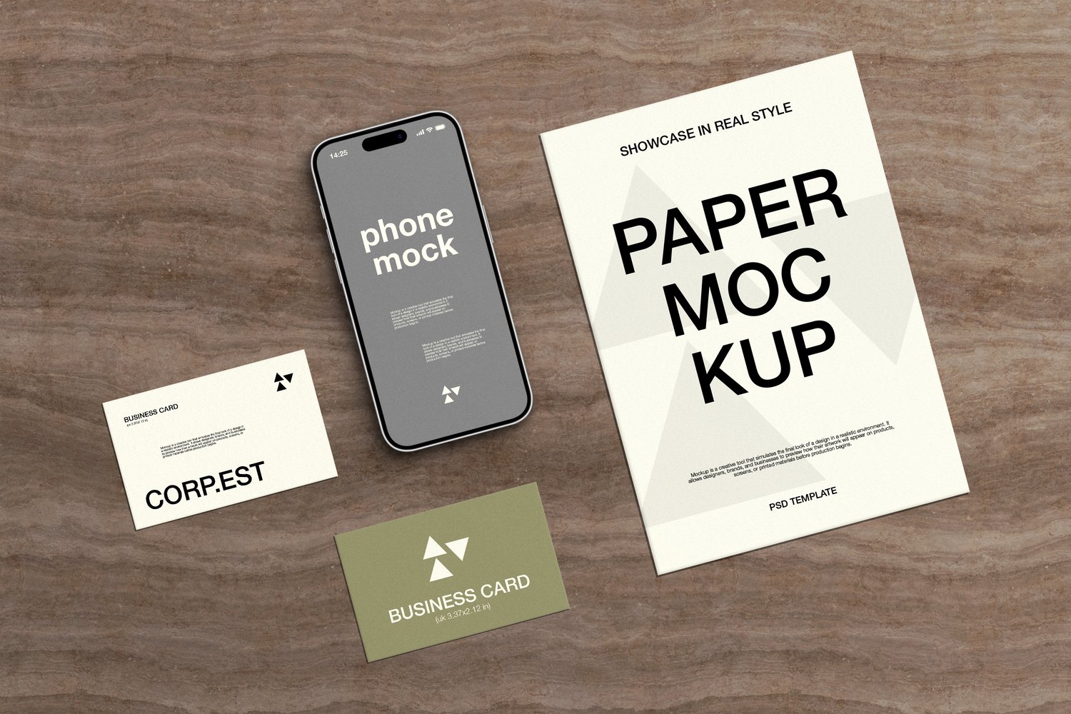 A4 Paper, Business Card & Smartphone Mockup